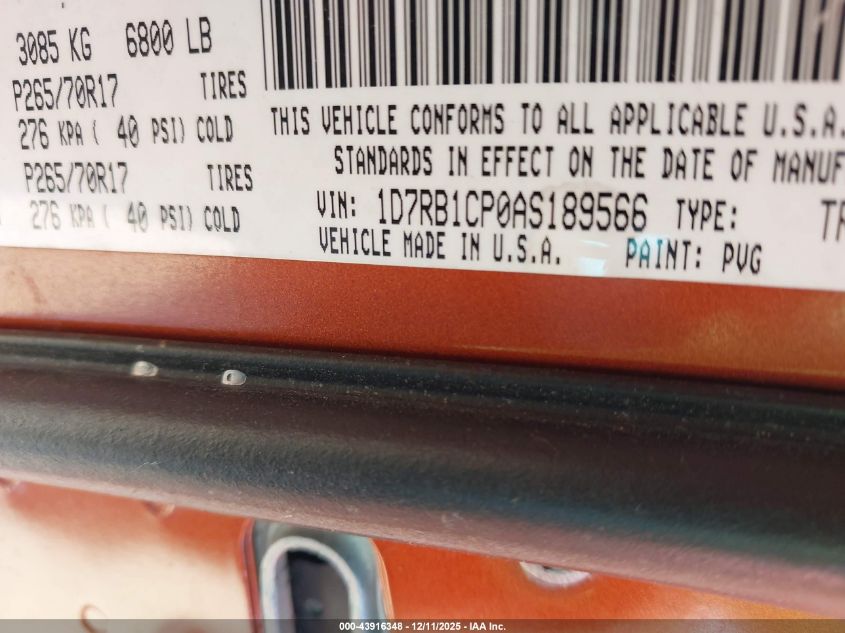 2010 DODGE RAM 1500 2010 року Бензин, 4.7, , vin - 1D7RB1CP0AS189566 з США