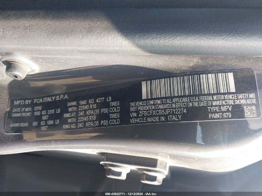 Колір СірийЦиліндри 4Привід Передній привідVIN ZFBCFXCB5JP712274Стан Заводиться та їде (перевірено)Ушкодження Передня права AutoRIA