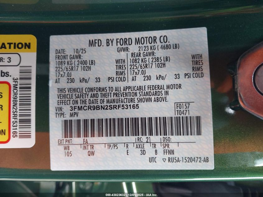 2025 FORD BRONCO SPORT 2025 року Бензин, 1.5, Повний привід, vin - 3FMCR9BN2SRF53165 з США