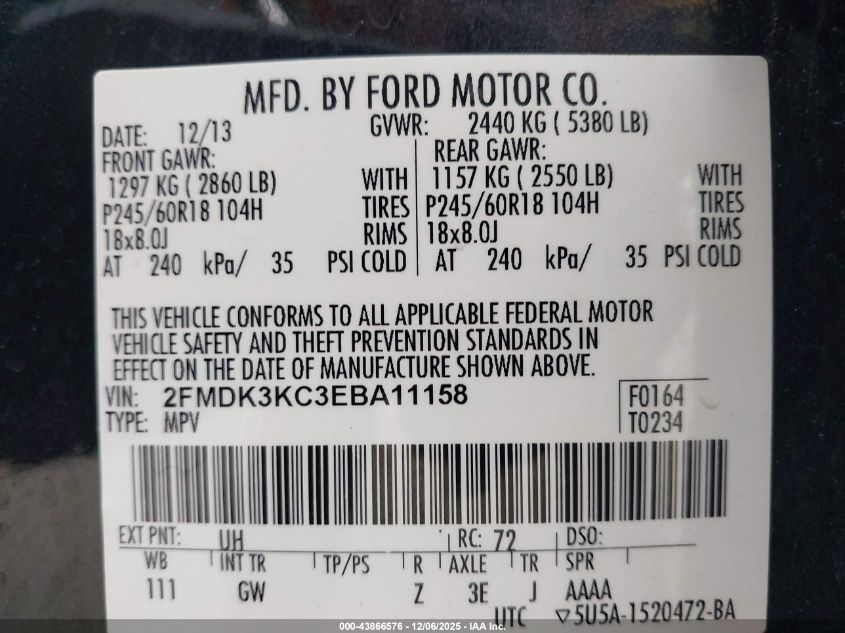 Колір ЧорнийЦиліндри 6Привід Передній привідVIN 2FMDK3KC3EBA11158Стан Заводиться та їде (перевірено)Ушкодження Перекидання AutoRIA