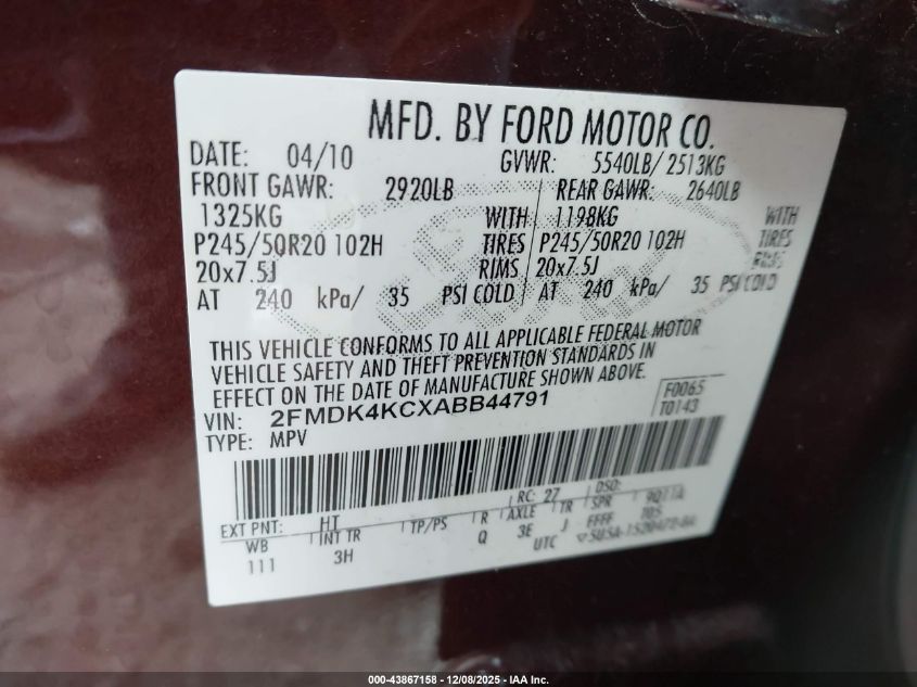 Колір БургундіяЦиліндри 6Привід Повний привідVIN 2FMDK4KCXABB44791Стан Заводиться та їде (перевірено)Ушкодження Задня AutoRIA