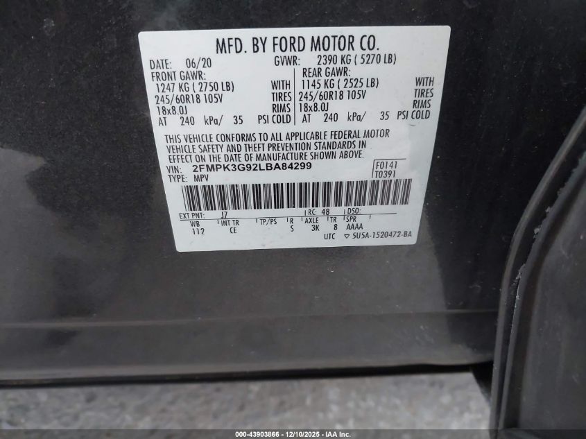 2020 FORD EDGE 2020 року Бензин, 2.0, Передній привід, vin - 2FMPK3G92LBA84299 з США