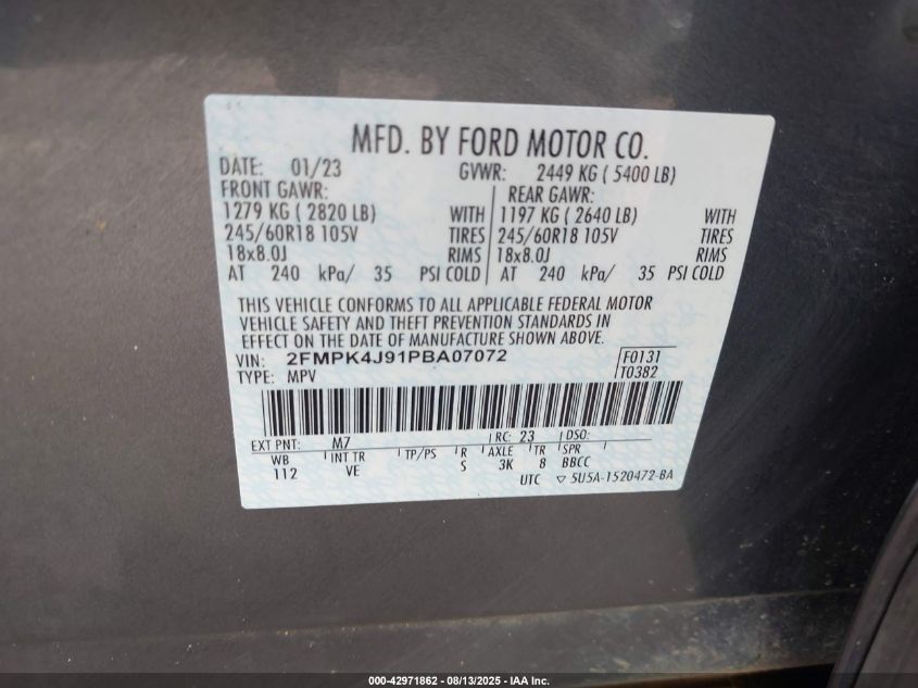 Колір СірийЦиліндри 4Привід Повний привідVIN 2FMPK4J91PB******Стан НевідомоУшкодження Передня або задняДата аукціону 2025-10-02