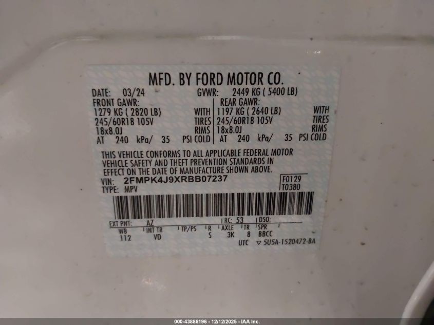 Колір БілийЦиліндри 4Привід Повний привідVIN 2FMPK4J9XRBB07237Стан Заводиться та їде (перевірено)Ушкодження Передня і задня AutoRIA