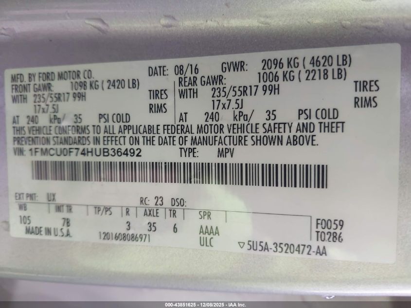 2017 FORD ESCAPE SE