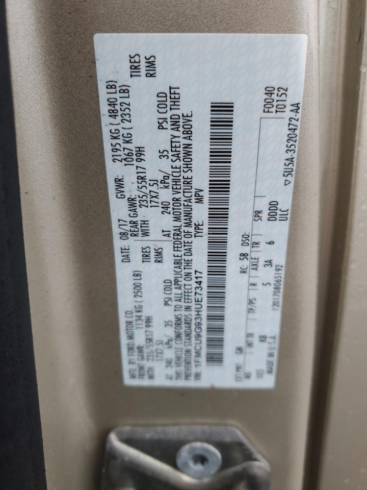 2017 FORD ESCAPE 2017 року Бензин, 2.0, 4x4 з переднім приводом, vin - 1FMCU9G93HUE73417 з США