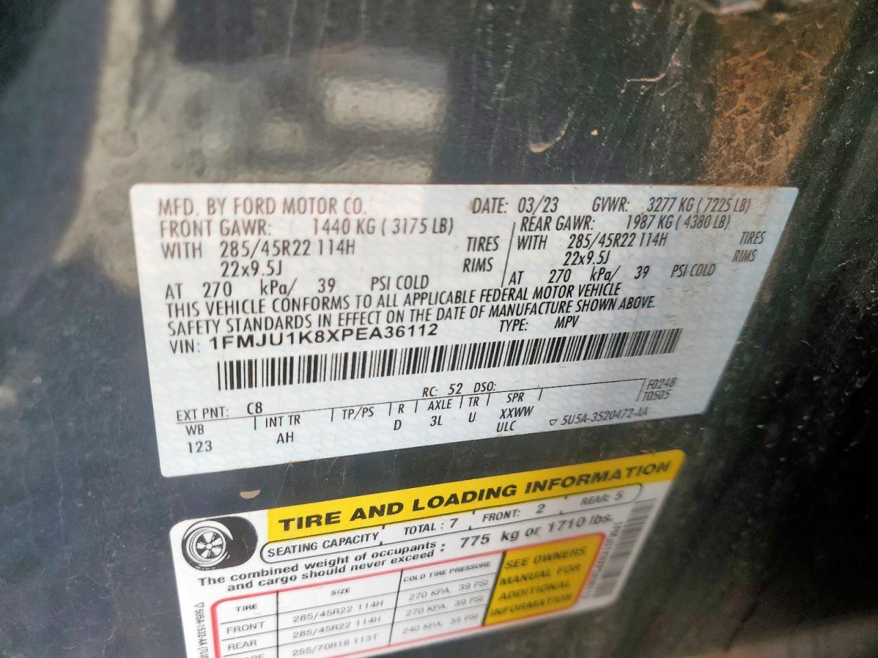 Колір Деревне вугілляЦиліндри 6Привід Задній привідVIN 1FMJU1K8XPEA36112Стан НевідомоУшкодження Передня або задняДата аукціону 2025-12-09
