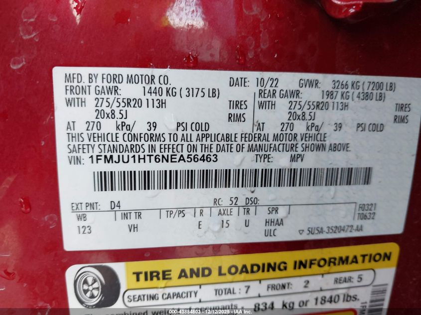 Колір ЧервонийЦиліндри 6VIN 1FMJU1HT6NEA56463Стан Заводиться та їде (перевірено)Ушкодження Передня або задня AutoRIA
