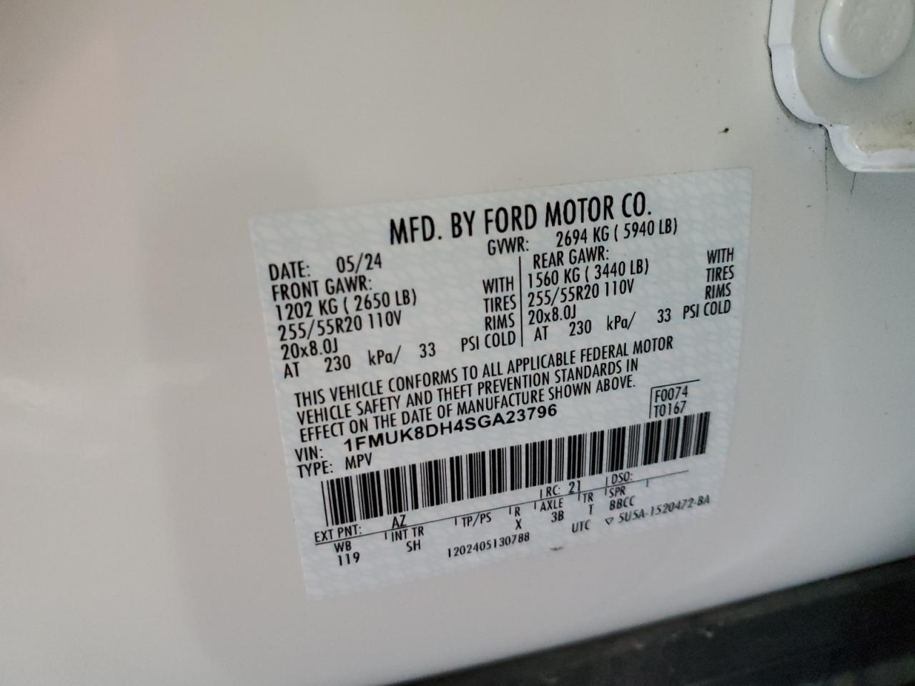 Колір БілийЦиліндри 4Привід 4x4 з заднім приводомVIN 1FMUK8DH4SGA23796Стан Заводиться та їде (перевірено)Ушкодження З боків