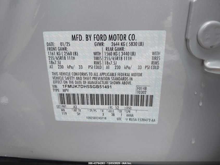 Колір БілийЦиліндри 4VIN 1FMUK7DH5SGB51491Стан Заводиться та їде (перевірено)Ушкодження Права сторона