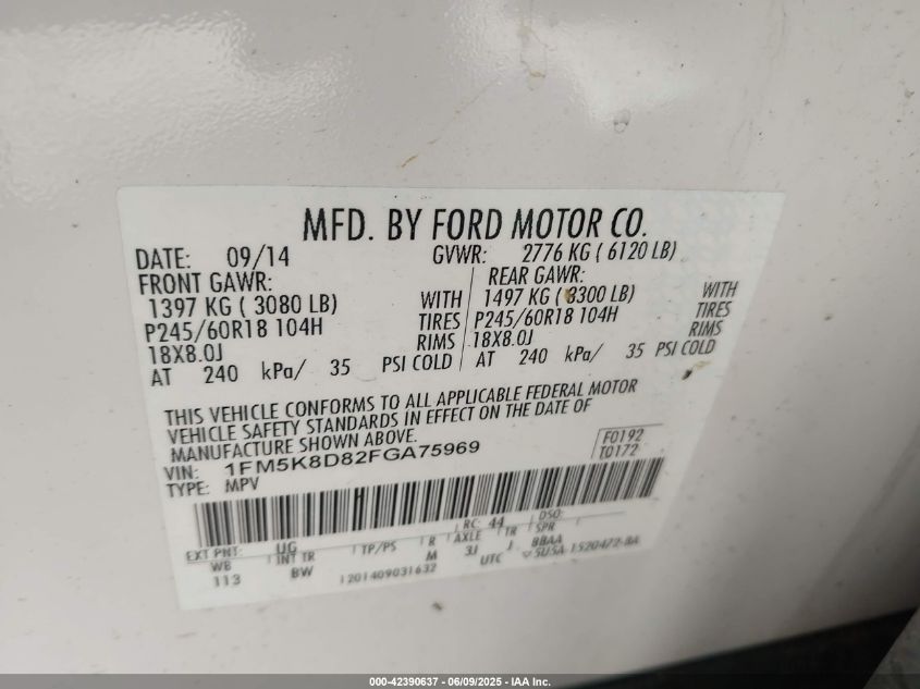 Колір БілийЦиліндри 6Привід Повний привідVIN 1FM5K8D82FG******Стан НевідомоУшкодження Передня або задняДата аукціону 2025-08-28
