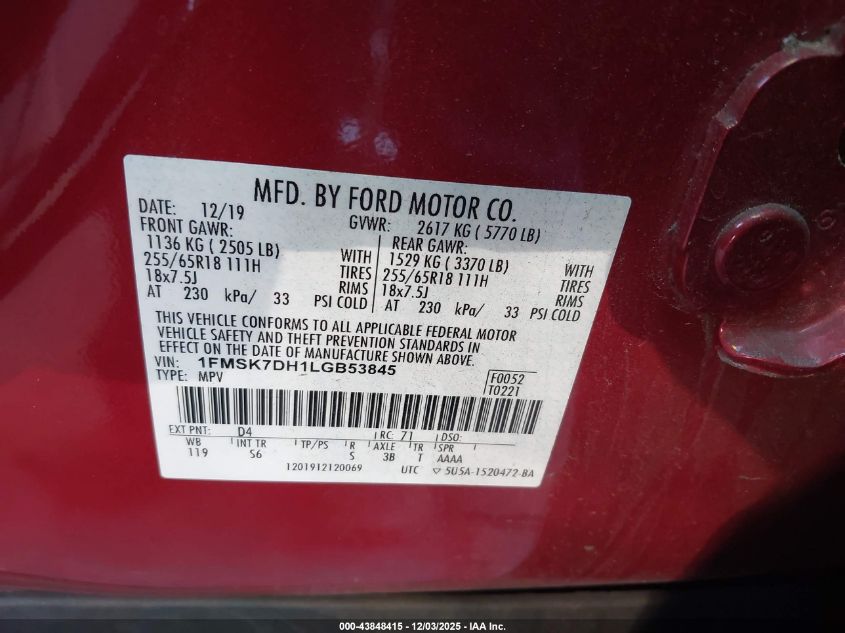 Колір ЧервонийЦиліндри 4VIN 1FMSK7DH1LGB53845Стан СтаціонарноУшкодження Вандалізм AutoRIA
