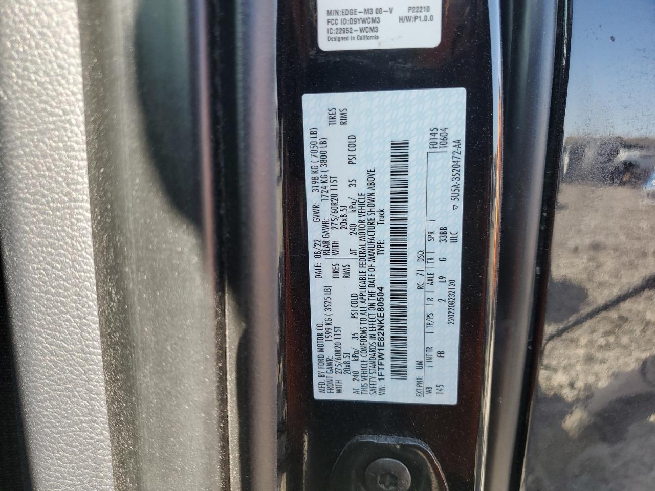 Колір ЧорнийЦиліндри 6Привід 4x4 з заднім приводомVIN 1FTFW1E82NKE80504Стан НевідомоУшкодження Передня або задняДата аукціону 2025-09-05