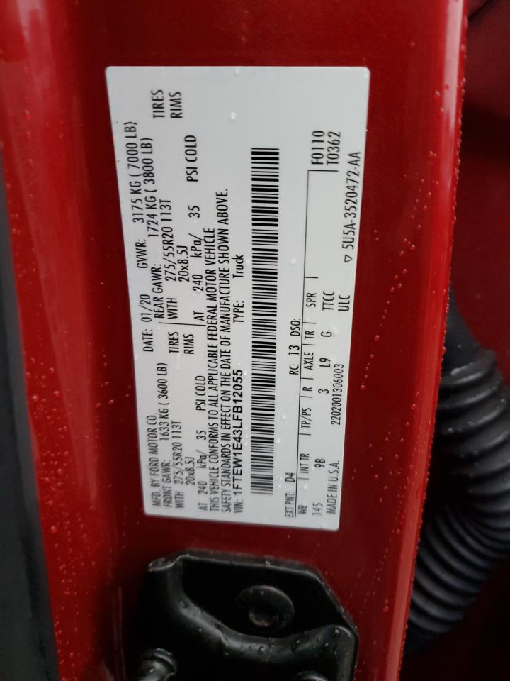 2020 FORD F-150 2020 року Бензин, 3.5, 4x4 з заднім приводом, vin - 1FTEW1E43LFB12055 з США