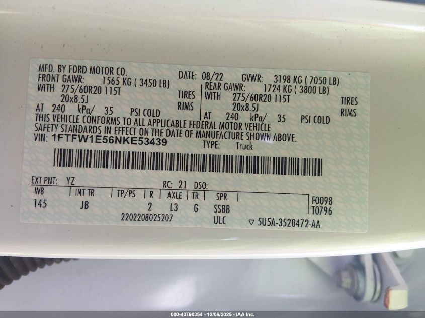 2022 FORD F-150 2022 року Бензин, 5.0, Повний привід, vin - 1FTFW1E56NKE53439 з США