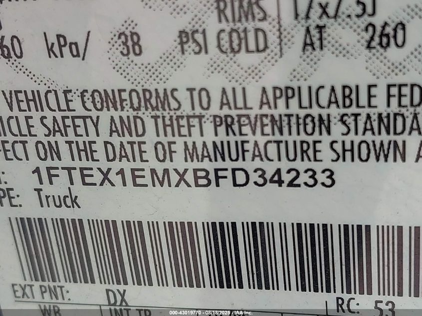 2011 FORD F-150 2011 року Бензин, 3.7, Повний привід, vin - 1FTEX1EMXBF****** з США