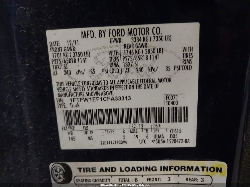 2012 FORD F-150 SUPERCREW