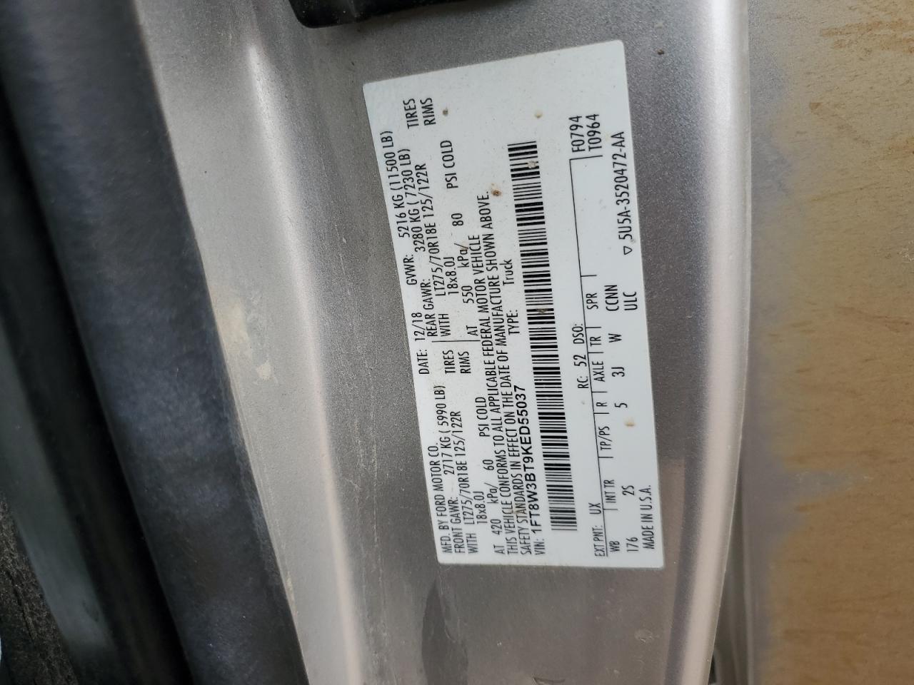2019 FORD F-350 2019 року Дизель, 6.7, 4x4 з заднім приводом, vin - 1FT8W3BT9KED55037 з США