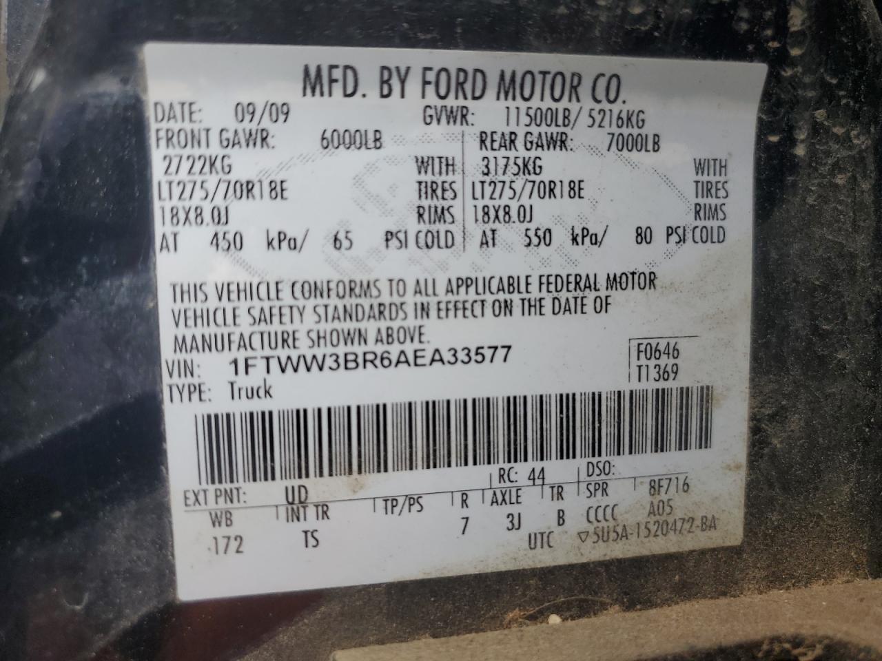 Колір ЧорнийЦиліндри 8Привід 4x4 з заднім приводомVIN 1FTWW3BR6AEA33577Стан Заводиться та їде (перевірено)Ушкодження З боківДата аукціону 2025-06-18