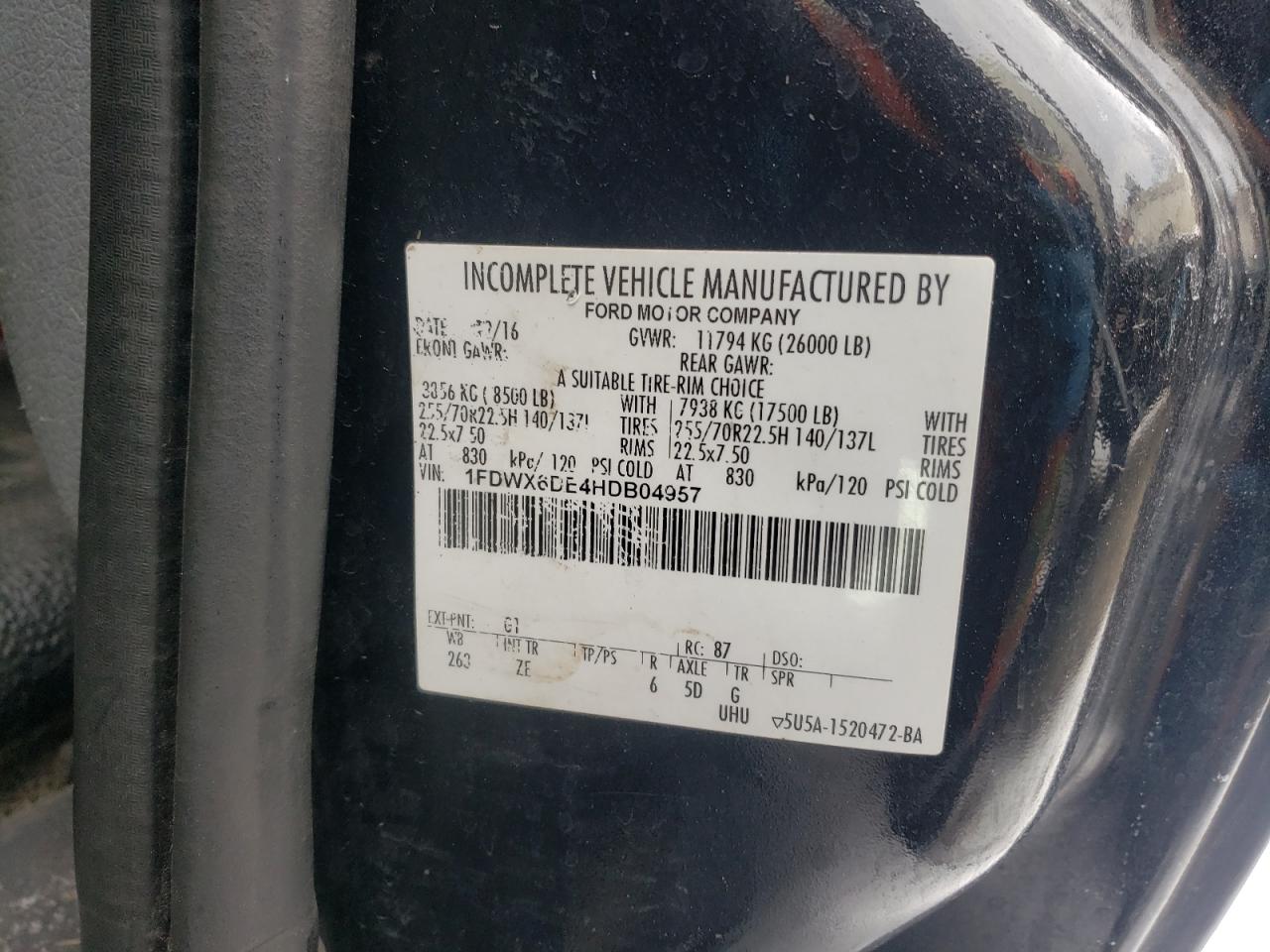 Колір ЧорнийЦиліндри 8Привід Задній привідVIN 1FDWX6DE4HDB04957Стан НевідомоУшкодження Передня або задняДата аукціону 2025-09-03