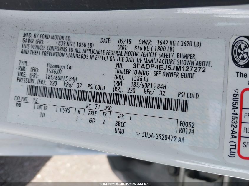 2018 FORD FIESTA S