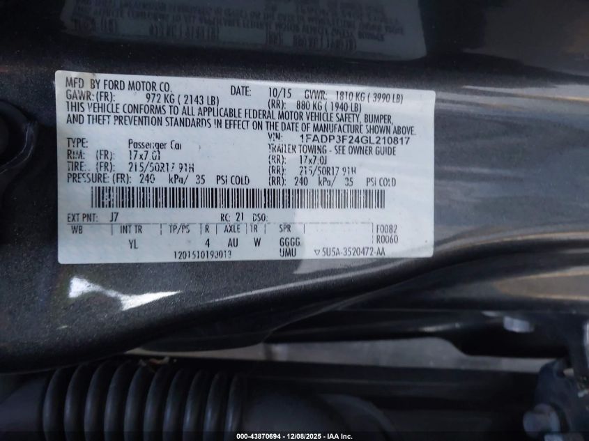 2016 FORD FOCUS SE