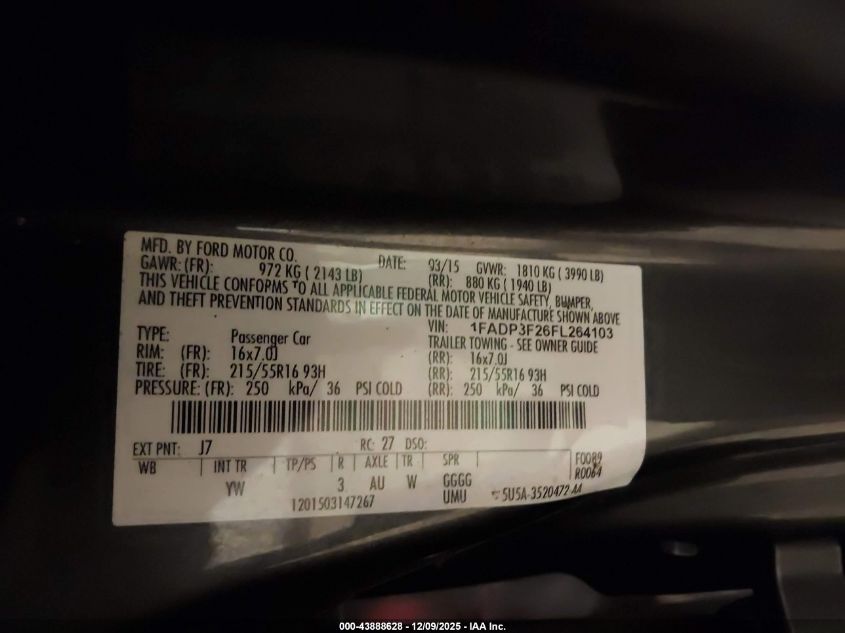 2015 FORD FOCUS 2015 року Бензин, 2.0, Передній привід, vin - 1FADP3F26FL264103 з США