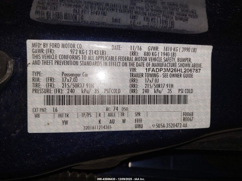 2017 FORD FOCUS SE