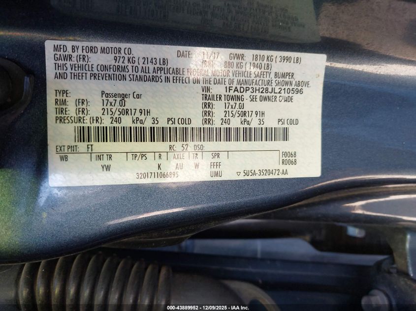 2018 FORD FOCUS 2018 року Бензин, 2.0, Передній привід, vin - 1FADP3H28JL210596 з США