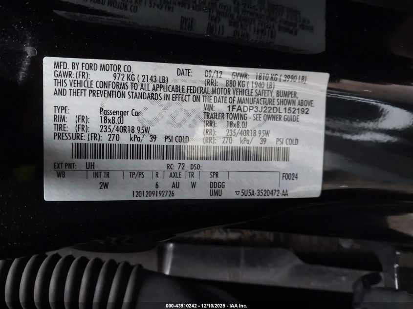 Колір ЧорнийЦиліндри 4Привід Передній привідVIN 1FADP3J22DL152192Стан Заводиться та їде (перевірено)Ушкодження Задня AutoRIA
