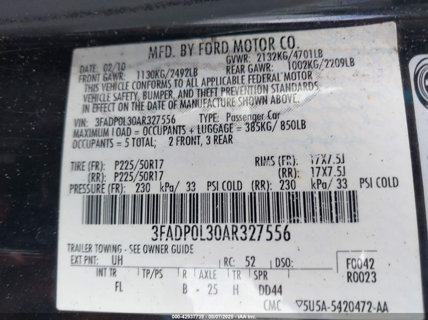 Колір ЧорнийЦиліндри 4Привід Передній привідVIN 3FADP0L30AR******Стан НевідомоУшкодження Передня або задняДата аукціону 2025-09-02