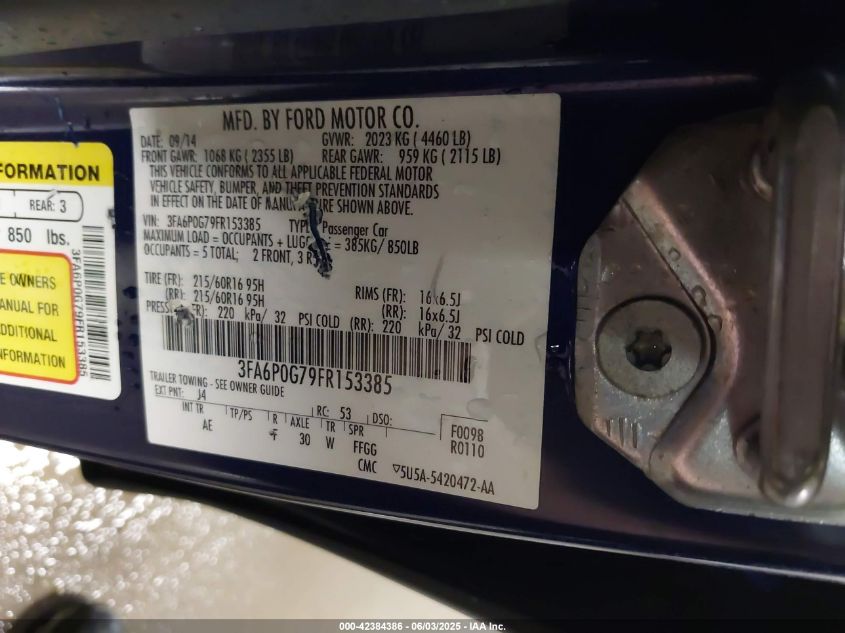 2015 FORD FUSION 2015 року Бензин, 2.5, Передній привід, vin - 3FA6P0G79FR****** з США