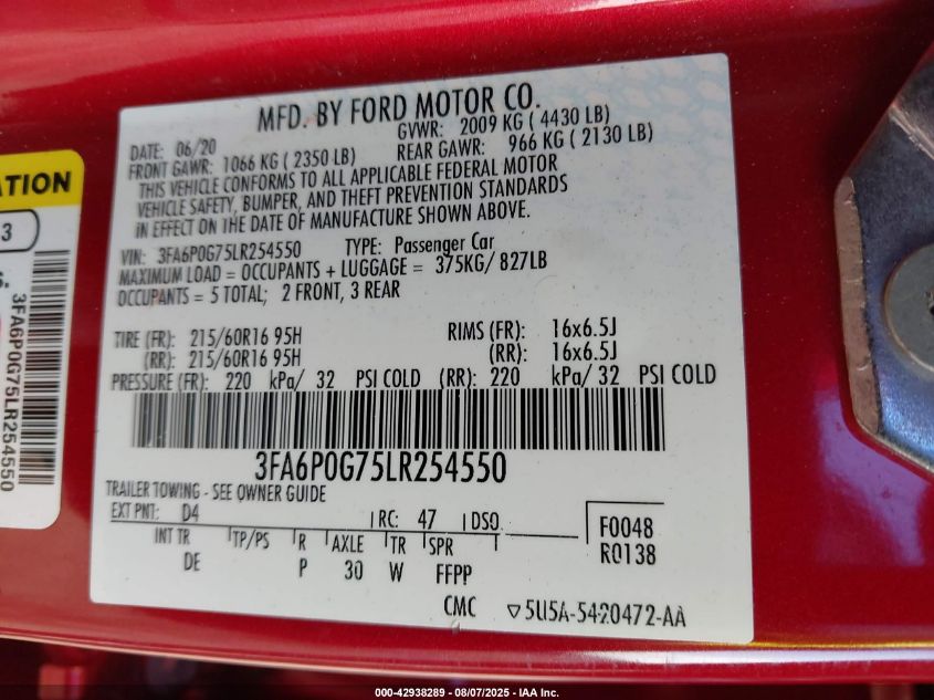 2020 FORD FUSION SE