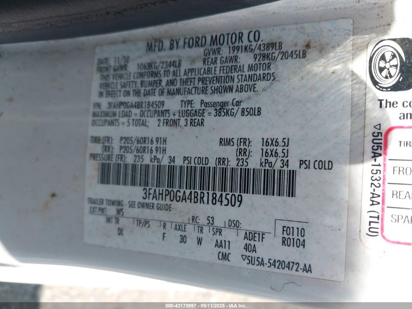 2011 FORD FUSION S