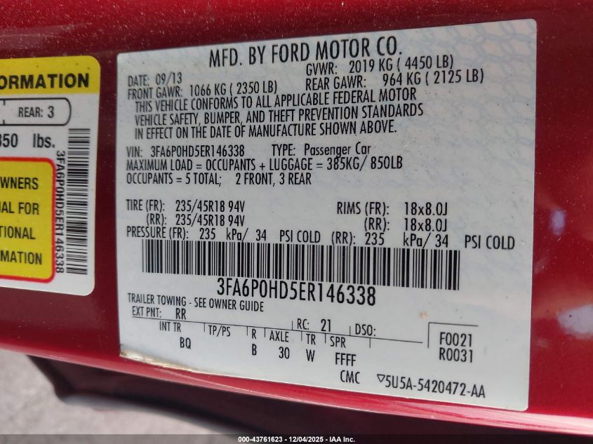 Колір ЧервонийЦиліндри 4Привід Передній привідVIN 3FA6P0HD5ER146338Стан Заводиться та їде (перевірено)Ушкодження Передня права AutoRIA