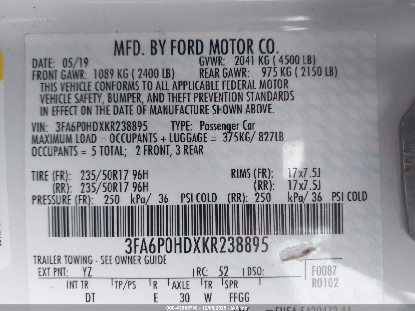 2019 FORD FUSION SE
