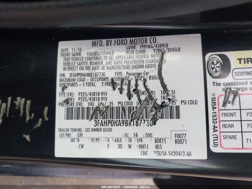 2011 FORD FUSION S