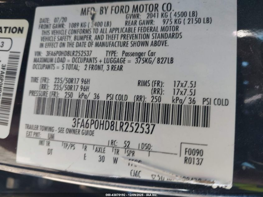 2020 FORD FUSION SE