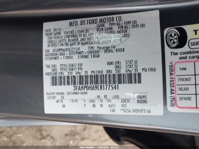 2012 FORD FUSION SE
