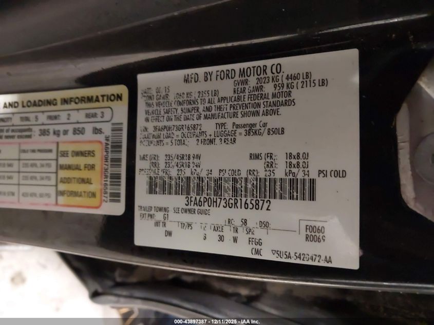 2016 FORD FUSION S