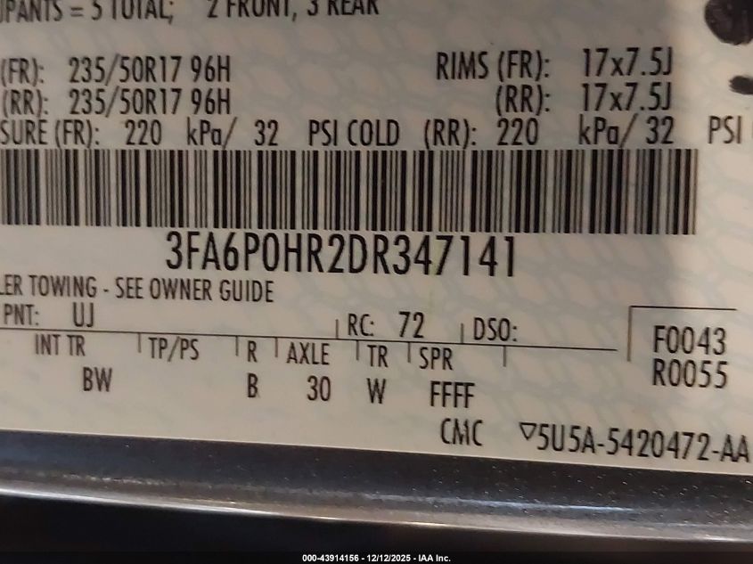 2013 FORD FUSION 2013 року Бензин, 1.6, Передній привід, vin - 3FA6P0HR2DR347141 з США