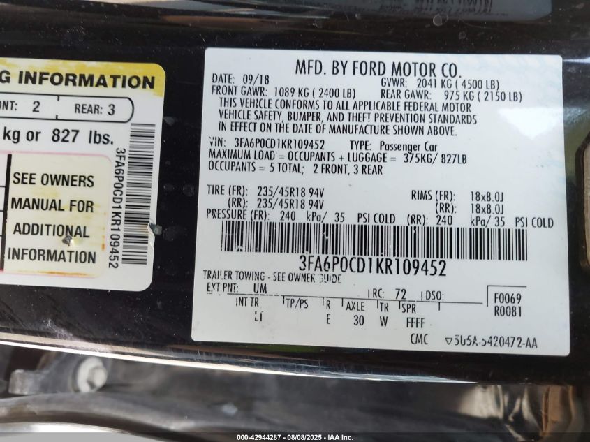 2019 FORD FUSION SE