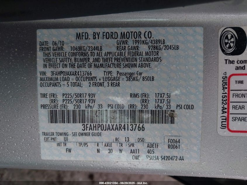2010 FORD FUSION 2010 року Бензин, 2.5, Передній привід, vin - 3FAHP0JAXAR****** з США