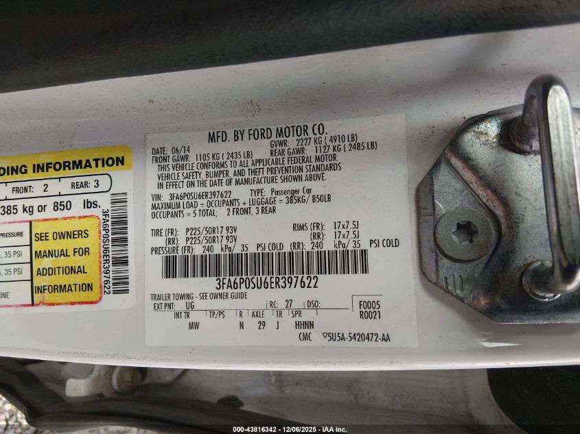 Колір БілийЦиліндри 4Привід Передній привідVIN 3FA6P0SU6ER397622Стан СтаціонарноУшкодження Передня ліваДата аукціону 2025-12-15 AutoRIA