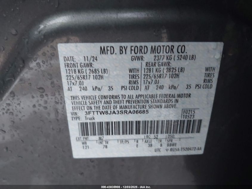 2025 FORD MAVERICK 2025 року Бензин, 2.0, Повний привід, vin - 3FTTW8JA3SRA06685 з США