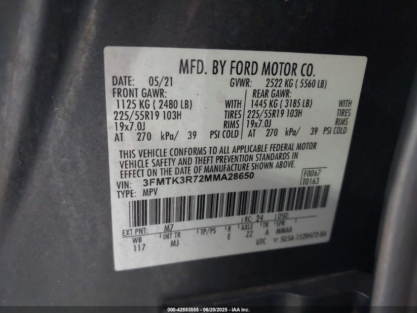 Колір СірийПривід НевідомоVIN 3FMTK3R72MM******Стан НевідомоУшкодження ЗадняДата аукціону 2025-09-18
