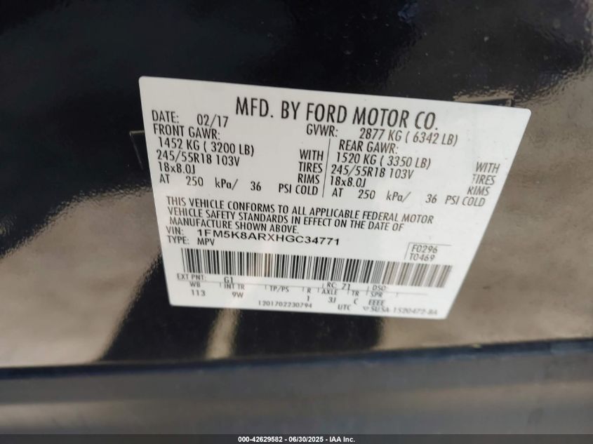 Колір ЧорнийЦиліндри 6Привід Повний привідVIN 1FM5K8ARXHG******Стан НевідомоУшкодження Права сторонаДата аукціону 2025-10-01