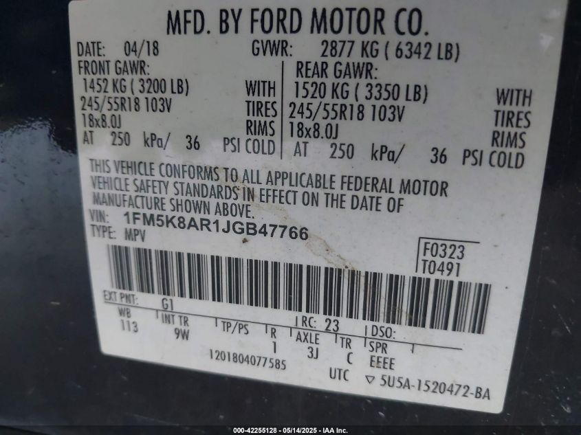 Колір ЧорнийЦиліндри 6Привід Повний привідVIN 1FM5K8AR1JG******Стан НевідомоУшкодження Передня права