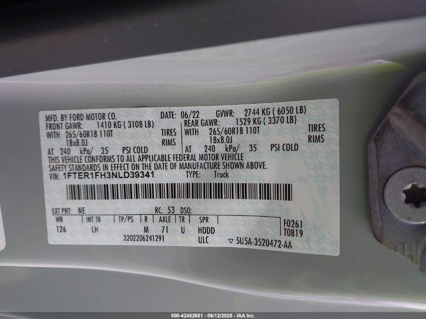 2022 FORD RANGER 2022 року Бензин, 2.3, Повний привід, vin - 1FTER1FH3NL****** з США