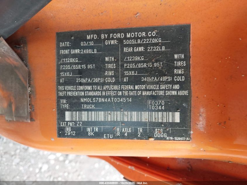 2010 FORD TRANSIT CONNECT 2010 року Бензин, 2.0, Передній привід, vin - NM0LS7BN4AT034514 з США
